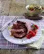 Arrange potatoes, curd cheese and pork fillets on plates. Sprinkle meat with pepper. Sprinkle quark with remaining paprika cubes and possibly fresh herbs