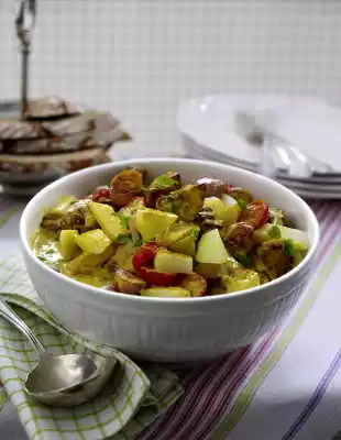 Add kohlrabi and tomatoes to the meat and braise for another 10 minutes. Stir in cream and chervil. Season the ragout with salt, pepper and curry and serve. Serve with rice or farmhouse bread.