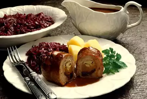 Remove the roulades and keep them warm. Mix the flour with some cold water. Pour into the sauce while stirring and bring to the boil. Season to taste with salt and pepper. Serve the roulades with the sauce. Garnish with parsley.