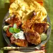 Mix crème fraîche, yoghurt and herbs. Season to taste with salt and pepper. Wash the meat and dab dry. Fry the steaks in a grill pan or on the charcoal grill for about 2 minutes on each side.