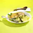 Refine sauce with sour cream. Season with salt and pepper. Drain the spaetzle and mix with the chives. Cut the meat into slices. Arrange everything and serve sprinkled with coloured pepper if necessary. Broccoli tastes good with it