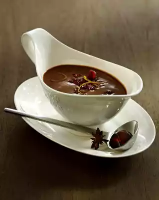 Chopping cranberries. Pour brew through a sieve into another pot. Add aniseed, cinnamon, orange juice and zest and reduce to about 600 ml. Mix starch and a little water. Stir in cream and cranberries, season to taste with salt, pepper and sugar