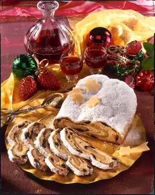 Repeat this process once or twice. Let the Stollen cool down. Roll out the remaining marzipan (approx. 60 g) on icing sugar and cut out stars as you like. Decorate the stollen with marzipan stars. The Stollen tastes particularly good if it is well wrapped and left to stand in a cool place for 2-3 days. Results in 20-24 slices