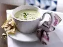 Peel garlic and onion. Crush garlic finely, dice onion. Mix mayonnaise, crème fraîche, 6-8 tablespoons asparagus stock, onion and garlic. Season to taste with salt, pepper and lemon juice