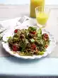 Add walnut oil. Add asparagus with the hot marinade to the potatoes. Mix well, marinate for about 1 hour and let cool off. Clean, wash and drain the rocket. Season the potato salad with salt and pepper, fold in the rocket and arrange in a large bowl. If necessary, spread some ham on the salad, add the remaining ham