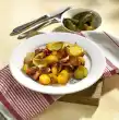 Wash the potatoes thoroughly and cut into slices. Heat 2 tablespoons of oil in a pan. Fry the potato slices for 15-20 minutes over medium heat until golden brown. Season with salt and pepper.