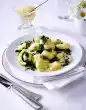 Peel, wash and cut the potatoes into pieces. Wash and peel celery and cut into large cubes. Cook both in boiling salted water for about 20 minutes.