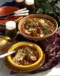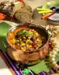 Peel and finely dice the onions. Peel garlic and cut into thin slices. Wash potatoes thoroughly, peel, wash again and cut into cubes. Heat 3 tablespoons of oil in a large saucepan, fry the onions, garlic and potatoes in it while turning, deglaze with broth, bring to the boil and simmer for 20-25 minutes at medium heat.