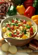 Rinse the corn well and let it drip off. Clean, wash and halve the tomatoes. Mix the prepared ingredients. For the sauce, mix yoghurt and pineapple juice. Season with salt, pepper, curry and sugar.