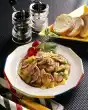 Cut the cold cuts into quarters, roll them up a bit and arrange them in portions with the salad and sauce.