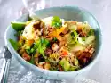 Leave to steep for an hour. Season to taste with salt and pepper and possibly a little vinegar. Serve with the rest of the bacon.