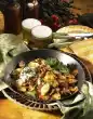 Fry the rest of the onions in hot fat. Add flour and sweat. 1⁄2 Stir in l water, milk and stock, bring to the boil. Simmer sauce for about 5 minutes. Whisk egg yolk and some hot sauce and stir into the sauce (do not boil any more!).