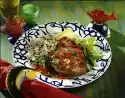 Season to taste with salt, pepper and nutmeg, drain well in a sieve. Meanwhile, wash the fish, dab dry and dice. Sprinkle with 2 tablespoons of lemon juice. Put them on four skewers. Squeeze the spinach well, chop coarsely. Knead the potatoes, 3 egg yolks, 150 g flour, salt and nutmeg with the dough hooks of the hand mixer, then knead briefly with your hands (it sticks a bit). Roll out to a rectangle (30x35 cm) on a well floured work surface. Spread the spinach evenly over it. Roll up from the long side and cut into 12 slices with a sharp knife. Heat the fat in a pot and fry the rest of the onion in it until transparent. Dust with 25 g flour, sauté, deglaze with stock and cream while stirring constantly, bring to the boil. Season to taste with salt, pepper, sugar and 2-3 tablespoons lemon juice. Remove from the heat, whisk 1 egg yolk and stir into the hot sauce. Keep warm.