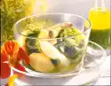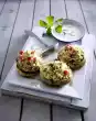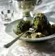 Cook the potatoes, except 1 for the sauce, in boiling water for about 20 minutes. Meanwhile clean the broccoli, divide into florets and cook in boiling salted water for about 5 minutes. Then mix finely with the egg yolks in a universal chopper. Drain the potatoes and let them steam in the preheated oven (electric cooker: 200 °C/ gas: level 3) for about 10 minutes. Peel, press through a potato press and mix with the egg yolk-broccoli mixture. Season with salt and nutmeg.