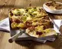 Whisk the milk, eggs and half the cheese. Season well with salt, pepper and nutmeg. Pour egg milk over the vegetables. Sprinkle the rest of the cheese on top. Let it simmer in the preheated oven (electric cooker: 200 °C/circulating air: 175 °C/gas: level 3) for about 35 minutes. Garnish if necessary
