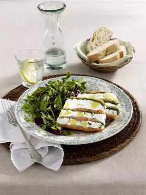 Turn the terrine onto a plate or board and remove the foil. Cut the terrine into slices and arrange on plates with the salad. Serve with baguette