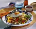 Pour the cheese sauce evenly over it and sprinkle with the rest of the cheese. Bake in the preheated oven (electric cooker: 200 °C/ convection oven: 175 °C/ gas: level 3) for 25-30 minutes. Serve garnished with parsley.