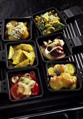 Wash the dill, dab dry and cut into little flags. Put some potato slices and crabs and 1 slice of cheese in a small pan. Season with salt and pepper and gratinate under the raclette grill until the cheese has melted. Garnish with dill pans