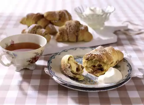 Place the croissants on a baking tray lined with baking paper and bake in a preheated oven (electric range: 175 °C/ convection oven: 150 °C/ gas: level 2) for 25-30 minutes. Remove from the oven and allow to cool for about 5 minutes. Put the croissants on a cake rack and let them cool down. Dust with icing sugar