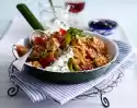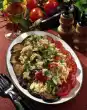 Wash the potatoes and cook in boiling water for about 20 minutes. In the meantime, clean the red cabbage, cut into strips and wash. Peel onion and lard with cloves. Fry the red cabbage and onion in hot oil. Pour in broth and vinegar and braise for about 30 minutes. Chop the nuts roughly and add them.