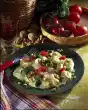 Add 1/3 of the parsley and thyme and fry briefly. Add the tomatoes, crush them with a wooden spoon and simmer covered for about 20 minutes. In the meantime, press the potatoes through a potato ricer and mix with the eggs. Season with salt and nutmeg. Add flour and starch to the potato mixture. Form the potato dough into a roll of about 50 cm. Cut off approx. 2 cm wide slices. Dust hands with starch and form gnocchi (16-18 g). Press in the gnocchi with a fork and cook in portions in boiling salted water for about 10 minutes. In the meantime grate parmesan. Remove the gnocchi and layer them in an ovenproof dish. Sprinkle some Parmesan cheese on top.