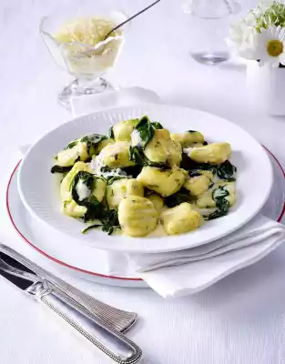 Heat butter in a large frying pan. Fry the gnocchi for about 2 minutes while turning them, then add creamed spinach, mix and arrange on plates.