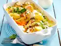 Finely grate the cheese. Grease a gratin dish. Preheat the oven (electric cooker: 200°C/circulating air: 175°C/gas: level 3). Peel and wash potatoes and cut or slice them very thinly.