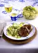 Wash parsley, dab dry and chop. Season savoy cabbage with salt and pepper. Sprinkle parsley over it. Arrange the potato meatballs on the savoy cabbage. Spread the diced ham on top.