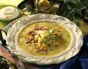 Wash the marjoram and, except for something to garnish, chop coarsely. Heat the oil in a pan. Brown the ground pork in it until crumbly. Add the remaining onions and fry until transparent. Stir in the tomato paste and marjoram and sauté. Season with pepper.