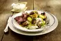 If necessary, add some chicken stock. Remove the chicken pieces and vegetables from the pan and keep warm. Heat the remaining oil in the pan and fry the potatoes for about 10 minutes, turning them over. Wash the rosemary, dab dry and remove the needles from the stems, except for a few for garnishing. Add rosemary to the potatoes in the last 2 minutes. Season potatoes with salt and pepper. Put the chicken pieces and vegetables back into the hot pan, warm them up briefly and serve them garnished with rosemary