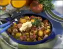 Season with salt and pepper. Meanwhile, remove the thyme leaves from the stalks, wash, dab dry and chop finely. Drain dried tomatoes and cut into strips. Fold in spring onions, meat loaf and dried tomatoes and let warm up. Heat the fat in a pan and fry the fried eggs. Place the eggs on the potato and meat loaf pan. Season with salt, pepper and thyme