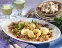 Clean, wash and chop the spring onions. Peel, wash and quarter the potatoes. Cut meatloaf into pieces. Heat oil in a pan and sauté spring onions. Add meat loaf and fry for about 5 minutes. Take out. Fry the potatoes in the frying fat for approx. 20 minutes, turning from time to time.