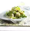 Heat the oil in a pan and fry the potato pancakes in it in portions on both sides for 2-3 minutes at medium heat. In the meantime, clean and wash the leek and cut it into rings. Clean the mushrooms, wash if necessary and cut in half. Take the potato pancakes out of the pan and keep them warm. Add leek and mushrooms to the frying fat and fry.
