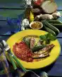 Serve with the prepared topping. Serve garnished with fresh herbs.