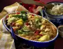 Mix paprika, tomatoes and onions. Season to taste with salt, lemon juice and Tabasco. Cut olives into slices. Crumble feta cheese. Wash herbs and pluck off leaves. Mix everything carefully and let it stand.