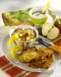 Preheat the oven (electric cooker: 225 ° C/ gas: level 4). Coat the baking tray with 1 tablespoon of oil and spread the deep-frozen potato pancakes on top. Bake for about 10 minutes on each side until crispy.