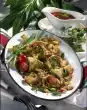 Fold in the tomatoes. Arrange two buffers with the prepared ingredients on each side. Serve sprinkled with coloured pepper.