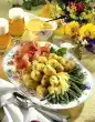 Arrange on small plates or platters with shrimp salad. Serve garnished with dill.
