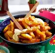 Mix mashed potatoes, 200 g flour, 1 egg and 1 teaspoon salt and knead until smooth. Divide into 14-16 pieces. Press flat on a little flour (approx. 10 x 10 cm). Put about 1 teaspoon of cheese mixture on each half of the dough, whip the other half over the filling, press the edges firmly together. Turn the pockets in flour