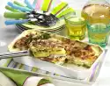 Wash and chop the parsley. Dice bacon finely, fry until crispy. Take out half of the bacon, mix with cream cheese and parsley. Season if necessary. Clean and wash leek and mushrooms. Cut leek into rings, quarter mushrooms