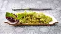 Halve the pasta dough, wrap one half back into the foil and roll out the other half to a square (approx. 13 x 13 cm) on a lightly floured work surface. Dust the dough lightly with flour again and roll it in several steps in the pasta machine to 2 thin strips (each approx. 15 x 40 cm). If it tears or forms holes, fold it up again and roll it again until you get to the thinnest roller setting. If no pasta machine is available, roll out the dough on a floured work surface into 2 very thin strips (approx. 15 x 40 cm). Process the rest of the dough in the same way
