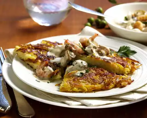 Serve Rösti with the shrimp ragout.