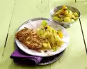 Whip the oil into it. Mix potatoes and marinade. Cover and leave to stand for about 30 minutes. Season to taste again. Arrange potatoes and cucumber on the salads. Cut the mortadella rolls into slices. Serve sprinkled with some tzatziki, remaining paprika cubes and roasted mustard seeds