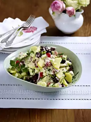 Wash the parsley, shake dry. Pluck the leaves from the stalks and chop them, except for a little to garnish. Add the parsley, except for a little garnish, to the salad, season again and arrange in a bowl. Garnish with parsley and sprinkle on top