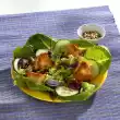 Peel and cut the potatoes into smaller pieces and mix them with the pesto. Arrange pesto potatoes with rocket, tomatoes and pine nuts in salad bowls.