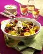 Mix cucumber, peppers, tomatoes, lettuce, potatoes and sauce. Knead the sausage and the remaining onion. Season with pepper and paprika powder. Form small balls from the minced meat. Heat the oil in a pan.
