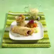 Cut the ham in half lengthwise. Finely slice the parmesan. Cut tortilla into approx. 24 cubes. Stick the parmesan, olives and ham on top