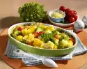 Peel and wash the potatoes, cut them in half lengthwise, spread them on a baking tray lined with baking paper, season with caraway seeds and salt