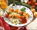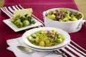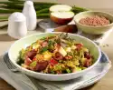 Peel garlic and chop finely. Mix curd and sour cream. Stir in herbs and garlic. Season to taste with salt and pepper. Serve the potatoes, herb curd and smoked pork together. Garnish with herbs