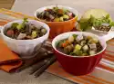 Peel and wash the potatoes, cut into slices and dab dry. Place in a bowl and drizzle with oil. Season with salt, pepper and paprika. Put the potatoes on a baking tray lined with baking paper. Bake in a preheated oven (electric cooker: 200 °C/ gas: level 3) for 20-30 minutes. Wash the herbs, dab dry and chop finely, except for a little to garnish.